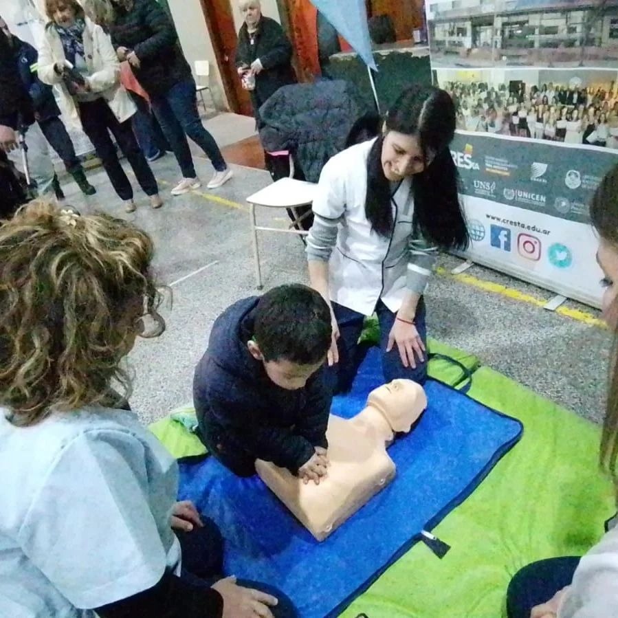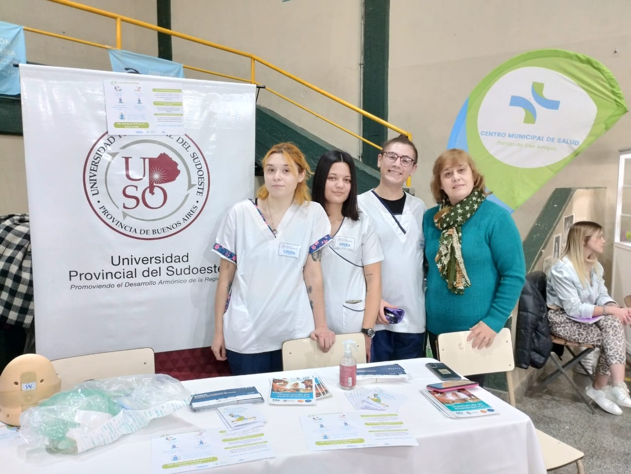 Estudiantes de Enfermería de la Escuela de Enfermería “Lic. Isabel M. Di Rado” y de la Universidad Provincial del Sudoeste, acompañados por docentes, realizaron control de tensión arterial y capacitaron al público asistente en Reanimación Cardiopulmonar (RCP). Cabe destacar la importancia de esta actividad para saber cómo desenvolverse ante una emergencia y así aumentar la posibilidad de sobrevida a través de la reanimación cardiopulmonar.