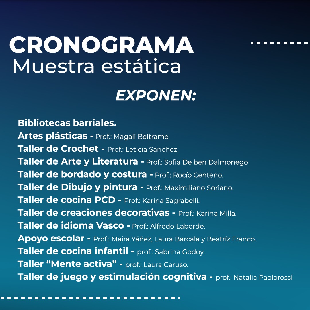 Las propuestas tienen como objetivo dar a conocer los trabajos realizados durante todo el año en las instituciones barriales y talleres dictados en dicho espacio cultural.