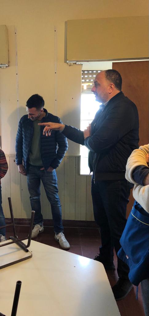 Fue recibido por docentes y alumnas de la institución, quienes le contaron del trabajo diario que realizan y le mostraron las instalaciones al candidato, que fue acompañado de Federico Pedone.