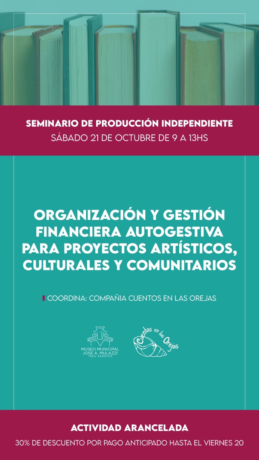 Esta actividad está dirigida a personas que integran proyectos artísticos, culturales o comunitarios, o desean desarrollar una idea germen. Abordará temas como diseño y planificación de proyectos, aplicación a convocatorias, armado de presupuestos, gestión financiera, promoción y venta de servicios culturales, entre otros.