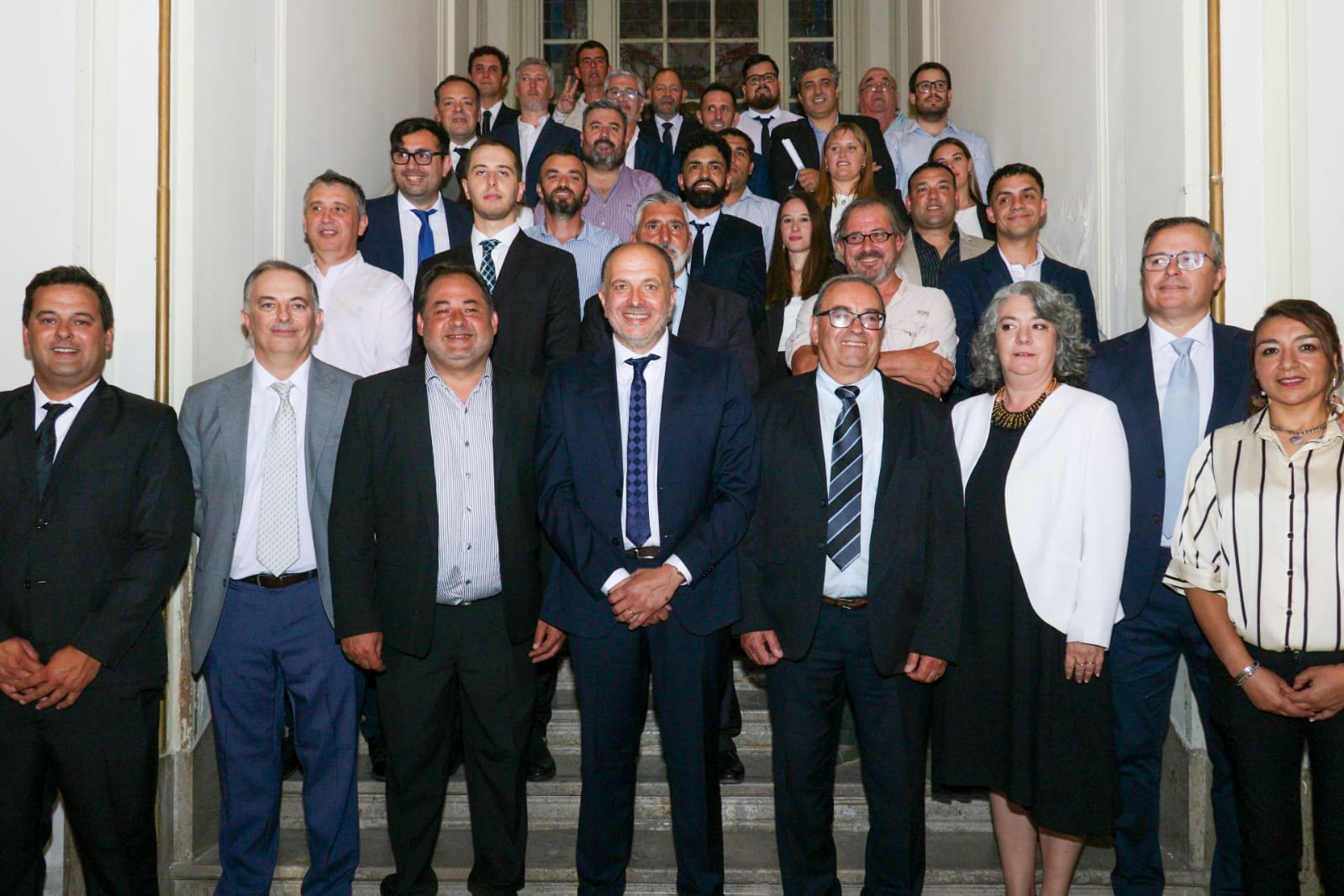 La actividad protocolar tuvo continuidad en la planta baja, donde el propio Garate presidió la jura de todo su Gabinete, y luego dirigió su primer discurso en funciones a una gran cantidad de público.