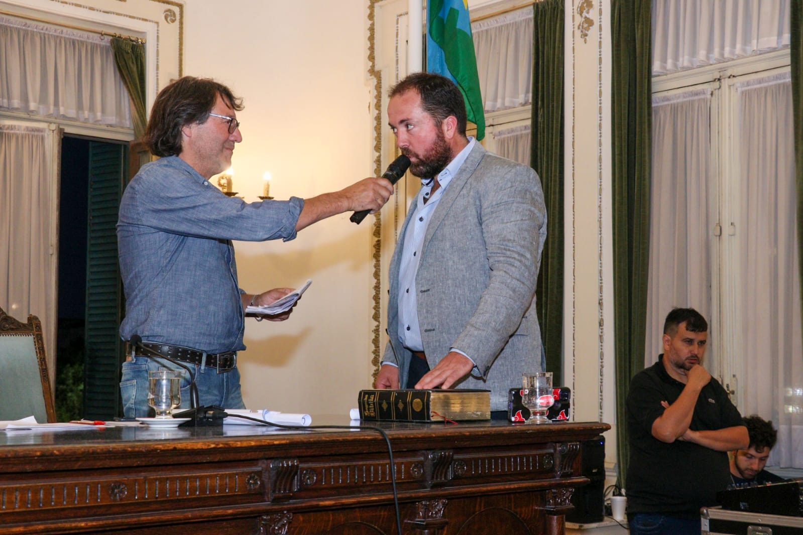 Luego, con la presidencia provisional de los ediles electos Adolfo Olivera y Mara Redivo, se recibió juramento a los entrantes, los nombrados, más Alejandro Barragán y Carla Moreno por Unión por la Patria; Cecilia Del Aguila, Omar Bartneche y Eduardo Giordano por Juntos; Mariano Hernández y Roxana Calvo por el Movimiento Vecinal y Gustavo Moller por La Libertad Avanza.