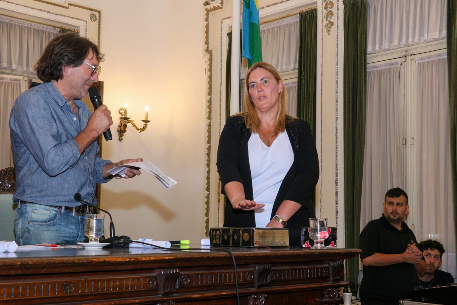 Luego llegarían las palabras de despedida del intendente Carlos Sánchez, y votadas las nuevas autoridades del Legislativo, que preside Mara Redivo (UP) con la vecinalista Rocío Liébana como secretaria, se recibió el juramento del flamante intendente.